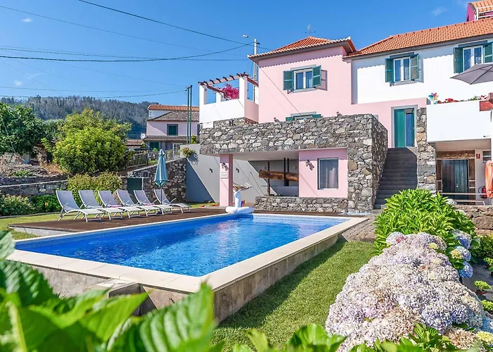 Casa Das Orquideas Estreito da CalhetaはCapela de Nossa Senhora do Bom Sucessoから徒歩でたった5分のところに位置し、テラスやプライベートなプールを楽しむことができます。 Wi-Fiを提供するこの宿泊施設は、Calheta beachから2.4km離れた所の場所にあります。